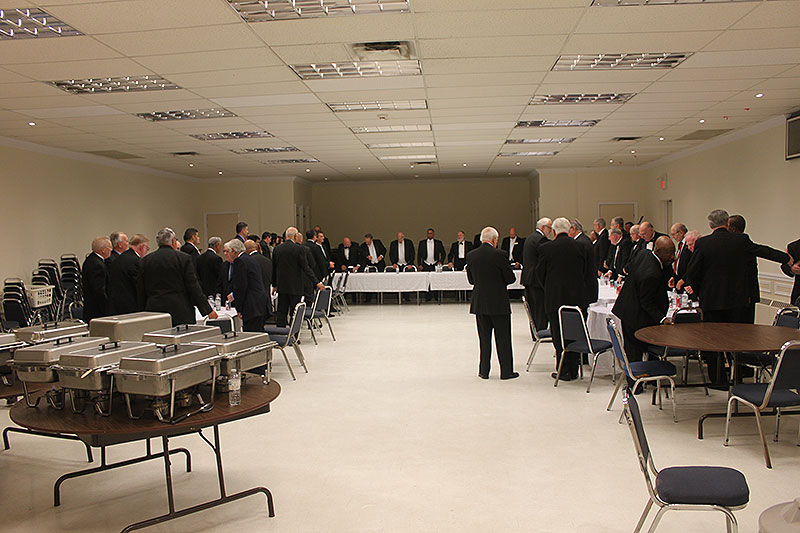 The brethren and guests were mostly present by 6:30 when the head table was piped in by Bro. Eric Davies, the District Piper