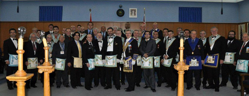 The Prestonian Lecture in Lodge was preceded by a very enjoyable and entertaining festive board. The District Piper, Bro. Eric Davies piped in the D.D.G.M., R.W. Bro Michael Litvak, P.G.M. M.W. Bro. Ron Groshaw, Members of the Board of General Purpose, R.W. Bros. Glen Hazlet, Fred Halpern and Charles Reid, the Assistant Grand Chaplain V.W. Bro. Graham, Worshipful Master, W. Bro. Gerry Rubinstein and the 2010 Prestonian Lecturer of the Grand Lodge of England, W. Bro. Wayne Warlow, Past Provincial Grand Junior Warden.